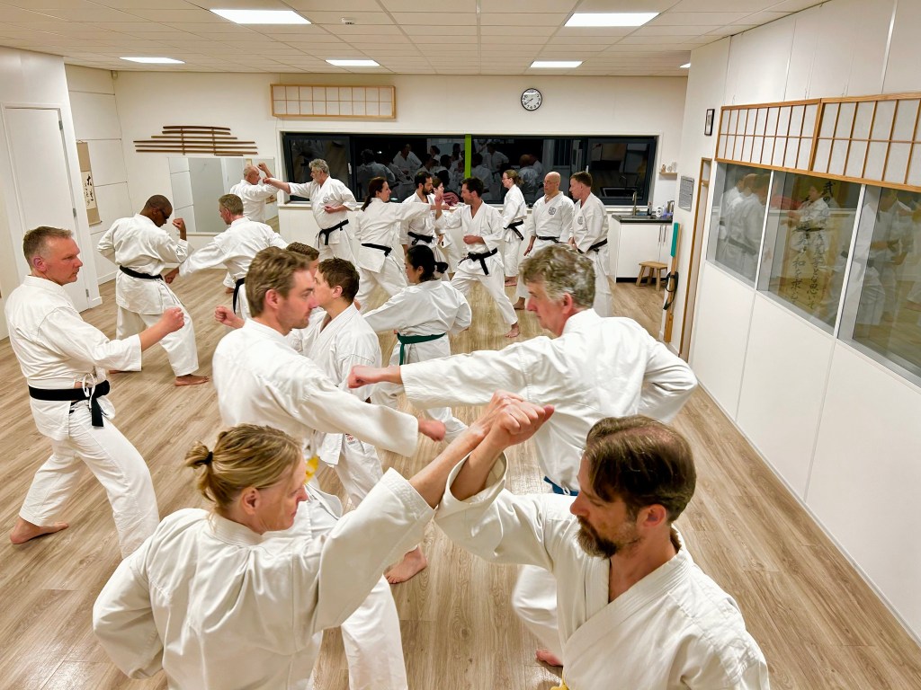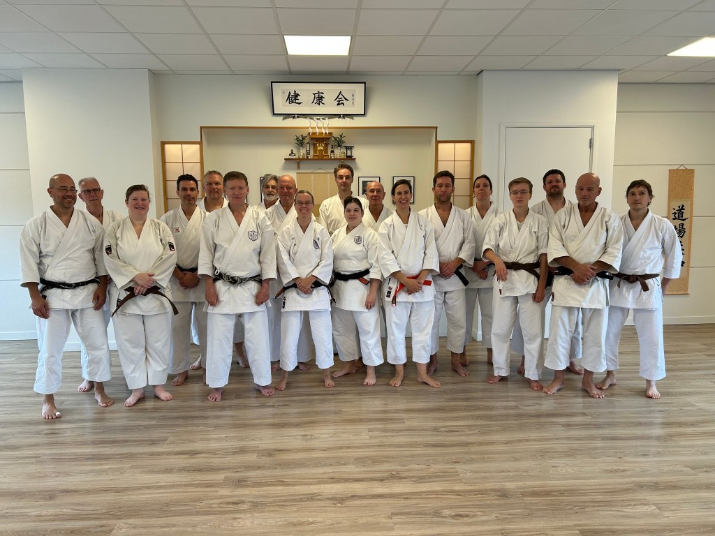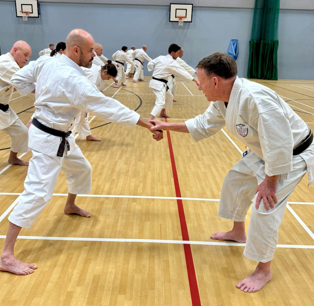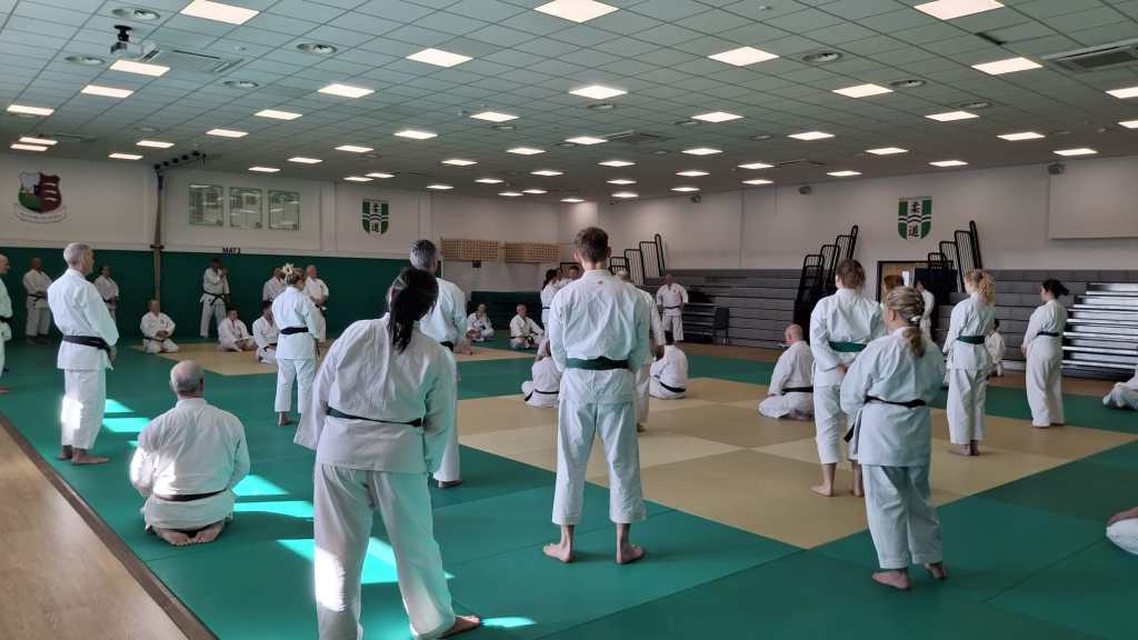 The Shikukai Autumn Course took place on 1-2 November, with Sensei Carol Chatterton 6th Dan and members of Kiku Wa Jyuku in Chippenham welcoming more than 30 students to a somewhat wet and windy Wiltshire. We were fortunate to have Sensei F Sugasawa with us to direct and supervise on both days, and to have Senseis Pam and Steve Rawson 7th Dans to lead training with assistance from other Shikukai instructors.
