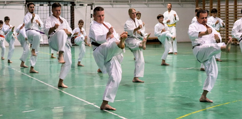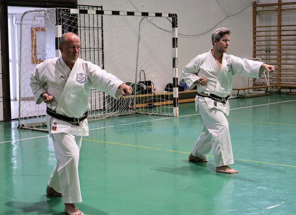 For all students, Sensei emphasised the importance of the origin of the movement, Okori Taru Tokoro, as well as the need to keep the palm side of the fist facing upwards until the final moment. During much of the session, students performed these techniques at low speed, making it possible to focus on form and giving instructors the opportunity to correct improper positioning of body, hands and feet and advise students on how to eliminate unnecessary movement, Mudana Ugoki.