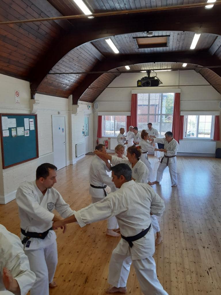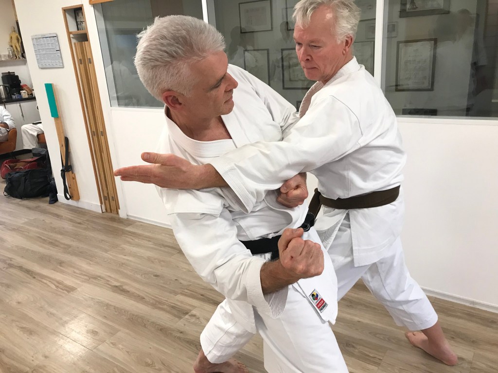 This was a day for bringing it all together in concrete practice. This is a completely different teaching methodology for me and a bit of an experiment, a high-risk strategy; but I need not have worried, the students completely rose to the challenge and pushed themselves hard. I had written on the Dojo whiteboard, ‘Just do it!’ and the runs of paired techniques flowed smoothly. I deliberately kept the techniques as core Wado methodology, so the students were not engaging with techniques that were unfamiliar to them, thus it was repeat and repeat again, all with the pressure of attacks meant it had to work. This was also where the timing issues that were addressed earlier in the weekend training came in.
