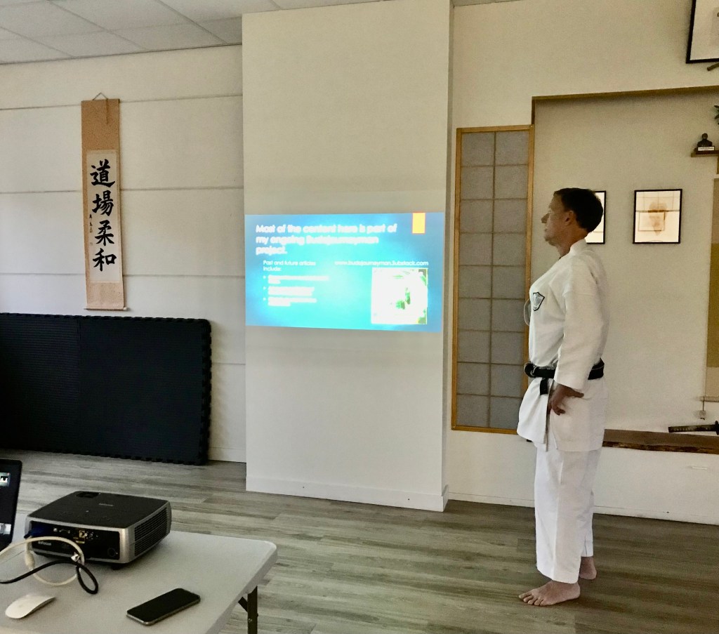 On a previous course in the Netherlands, I had organised for an after-training slide lecture using a PowerPoint projection. I wanted to do the same thing again but this time with the specific focus on the early history of Wado before it became a thing, the embryonic ideas of Otsuka Hironori that became the background for what we do now. While I appreciate that not everybody is a history geek like me, I wanted to try and open a window into the past, with the idea of shifting the perspective to try and understand what we are really doing.