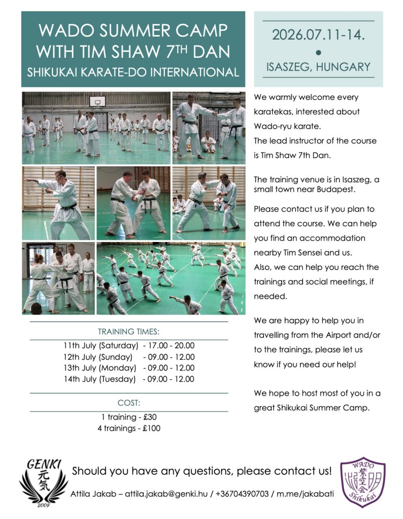 Shikukai licence holders only, 1st kyu and above.Shikukai Spring Course 2026